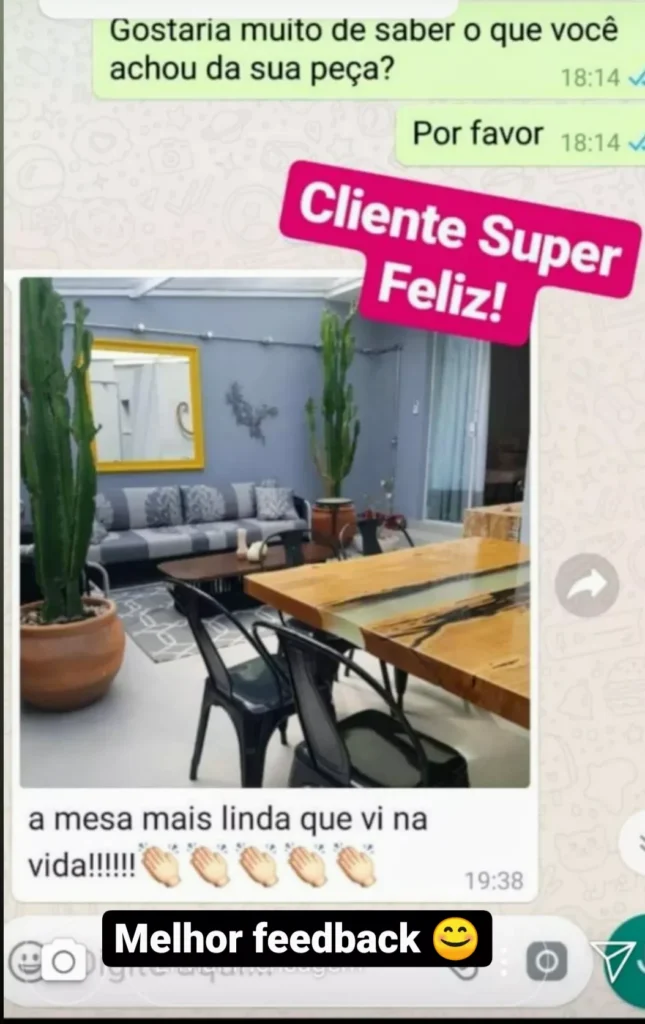 “Nunca imaginei que conseguiria fazer uma mesa dessas. Curso prático, bem explicado e com ótimo suporte!”