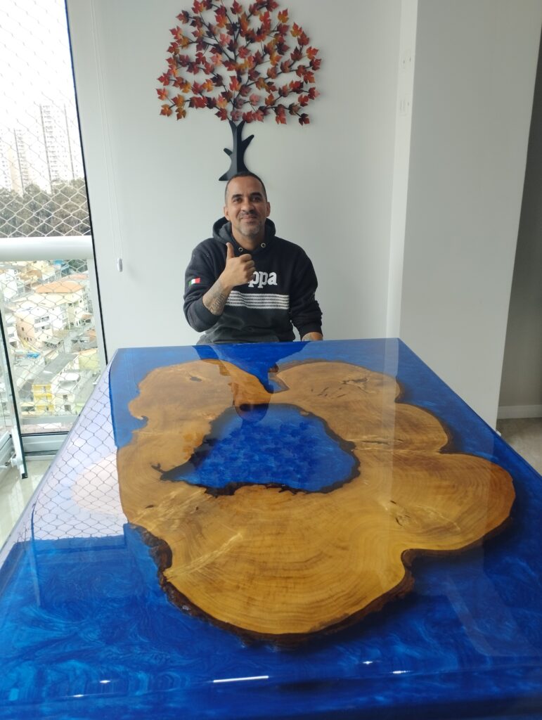 Rogério Silva é o fundador da Top Epoxy, referência nacional na fabricação de mesas resinadas.